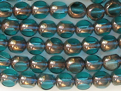 5mm aqua-green opalescent coins These beads have been